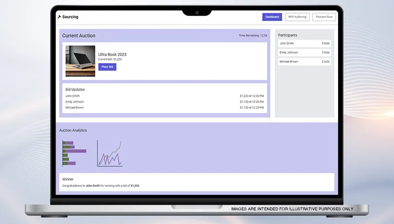 A unified platform such as GEP SMART™ facilitates eAuctions as routine sourcing events where users can simply create an auction, just like they would create an RFP, and enable real-time bidding.